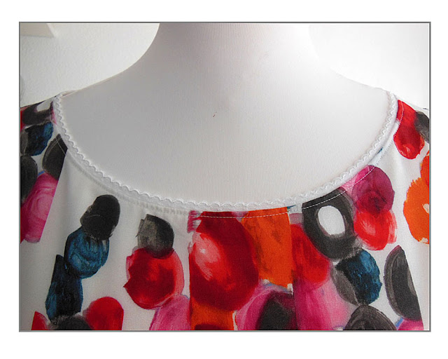 Ein neuer Schnitt von "Zwischenmass", der mir auf Anhieb gut gefallen hat. Ich hatte alle Teile zugeschnitten, zusammengesteckt und dann war mir die Kragenlösung doch etwas zu "opulent". Nun, dann eben etwas anderes ausgedacht. Ich hab den Kragen einfach mit einer schönen Gummilitze unterlegt und so sieht die Bluse auch sehr schön und sommerlich aus. Geschenkt habe ich sie meiner Schwester, der sie wirklich sehr gut steht.